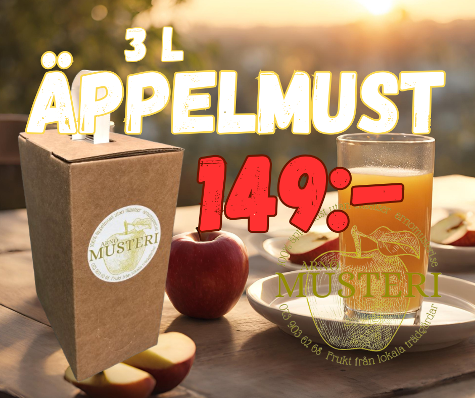 Musten innehåller endast juicen som pressas ur äpplena, inga tillsatser.